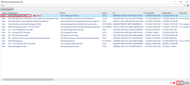 Correct Management Pack