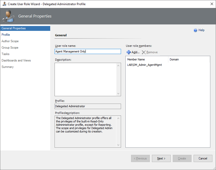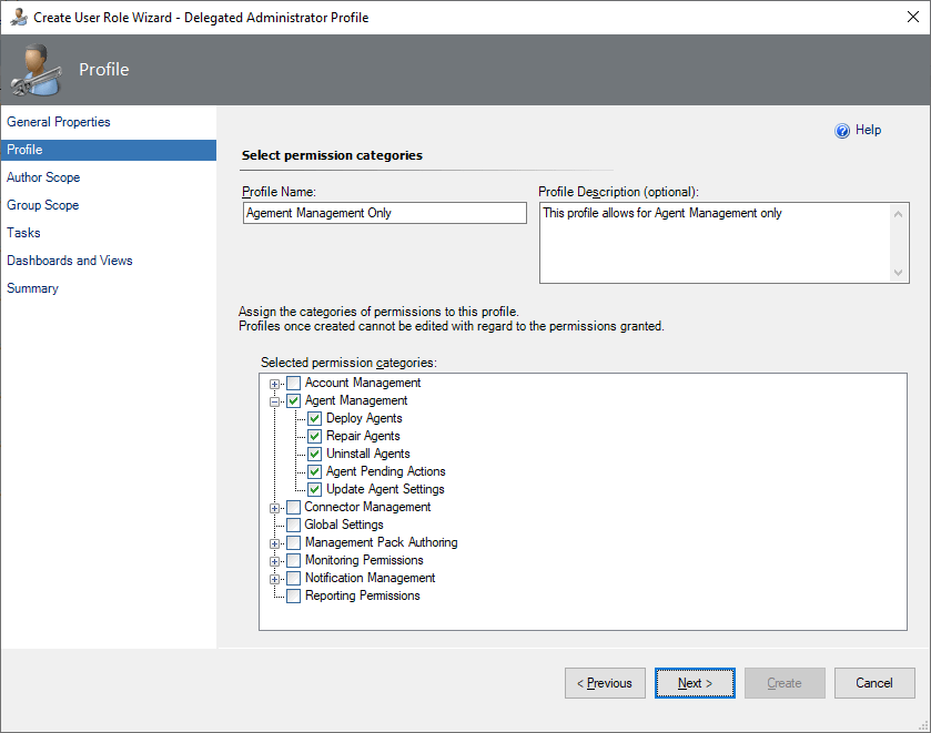 In this example I am going to use the wizard and scope to only allow for Agent Management