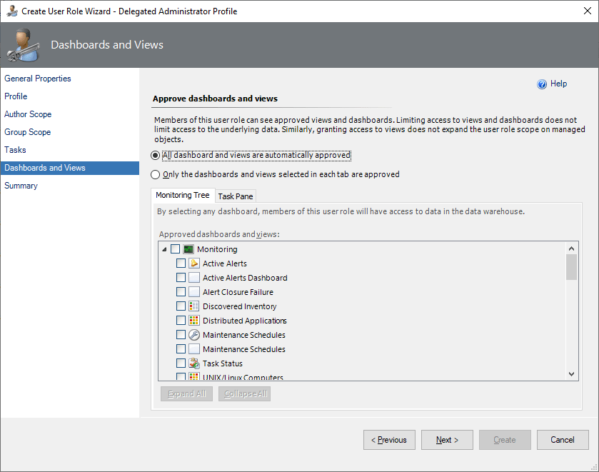 Approve Dashboards and views as needed.