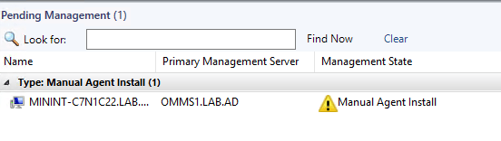 Operations Manager gives the option to install agents through the Operations Manager Console, or by other means “Manually Installed”. Several organizations choose the manual method as part of their imaging process or other reasons. Also, the organization may choose to not automatically approve agents into Operations Manager if Manually installed. Depending on the number of agents that are deployed, this can make it a challenge to comb through to ensure there are not agents waiting to be manually approved that do not need to be approved.