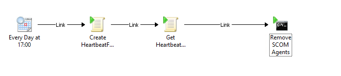 Kevin Holman has a blog (here) on this to remove large amounts of SCOM agents from a text file and the 4th activity of this runbook uses his script. But what if you want to pull these names automatically from the SCOM heartbeat alert into a file based on a set number of days (30) where a system has not sent a heartbeat? Through the help of Orchestrator and PowerShell we can do that.