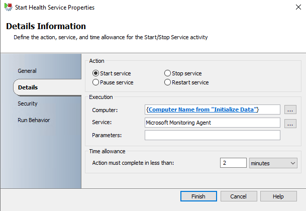 There may come a time where a SCOM agent is no longer communicating with its Management Server. Some organizations may allow the monitoring team to log into the server that has the agent communication issues and clear the Health Service State folder. For hardened environments, that may pose to be an issue. Through orchestrator, we can specify an account variable already in place.